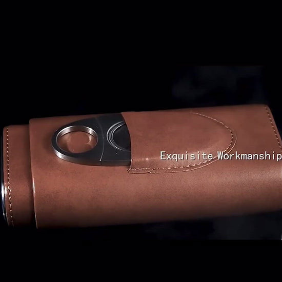 This Three-Finger Portable Cigar Humidor case ensures your cigars retain their ideal humidity, flavor and aroma for an extended period of time. Crafted with precision, it protects up to three cigars and is designed for maximum portability. Keep your cigars fresh and enjoyable wherever you go.
