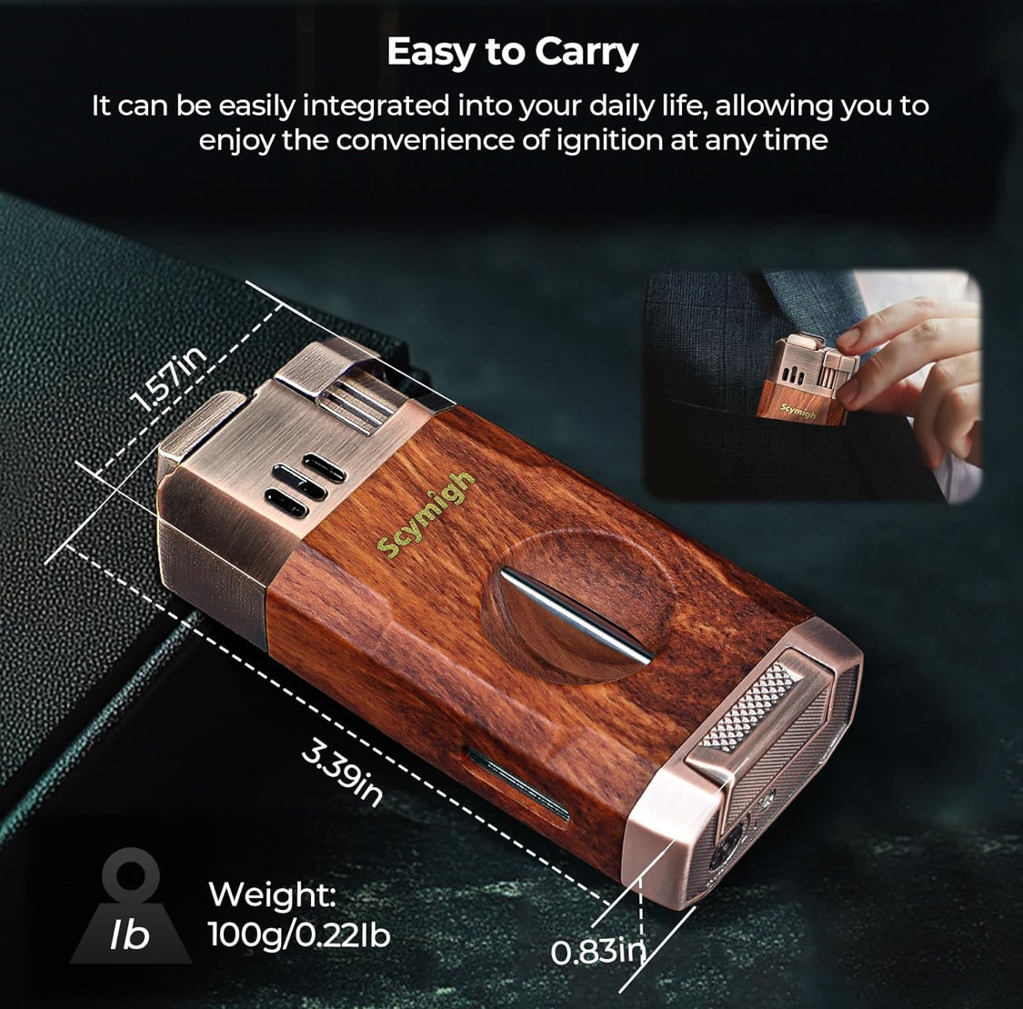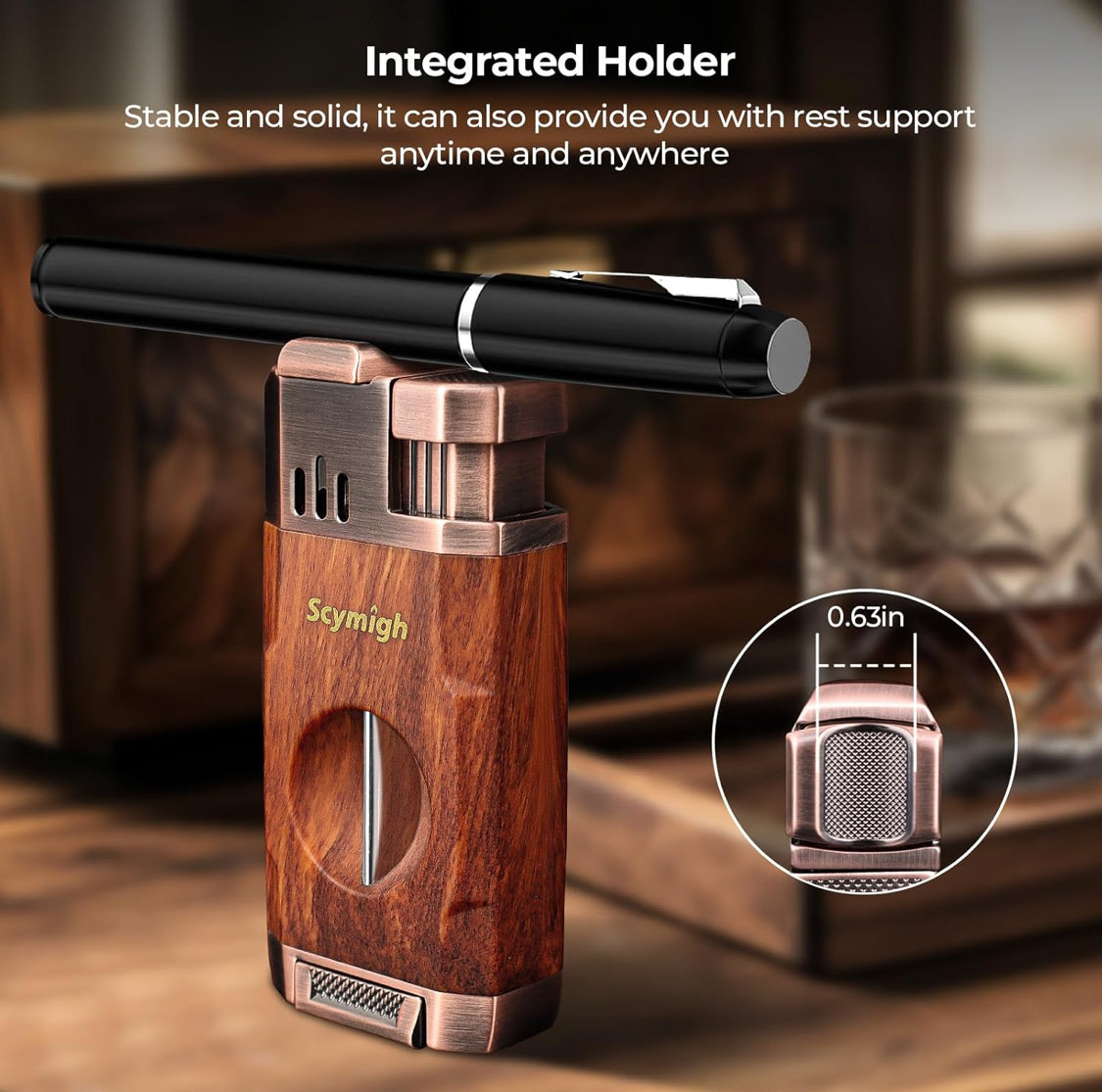 Torch Lighter, All-in-one Windproof Lighter with V Cutter, Holder, Dual Jet Flames, Refillable Butane Lighter for Candle, Travel, Multifunctional Accessories, Gifts for Men(Butane not Included)
